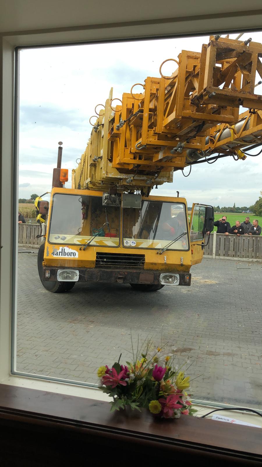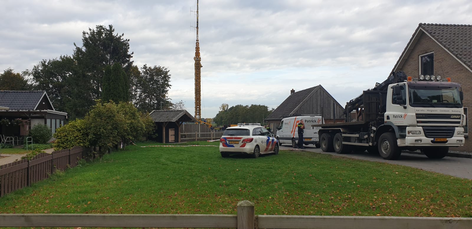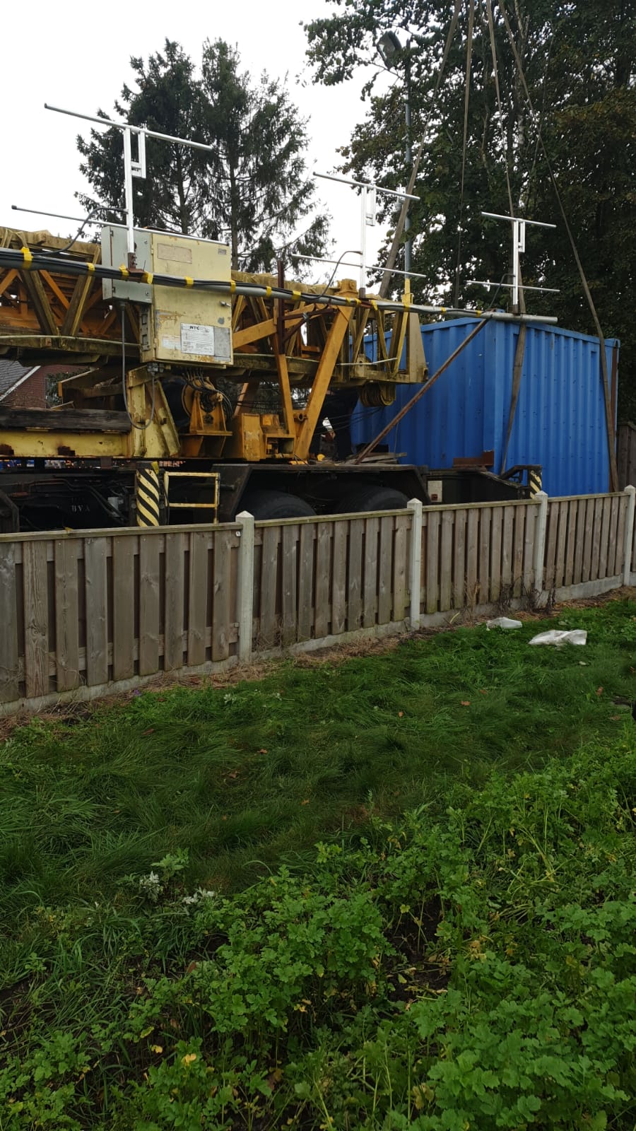 In Westerhaar naast een woning stond een telescoopkraan met antennes welke op verschillende locaties werd gebruikt voor onbemande uitzendingen.