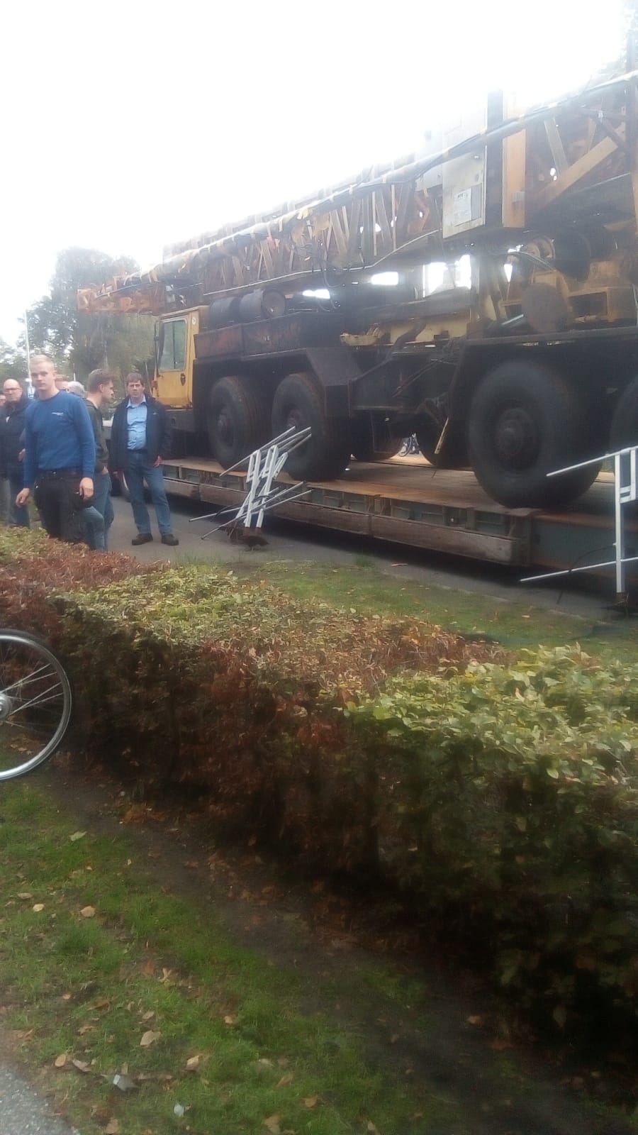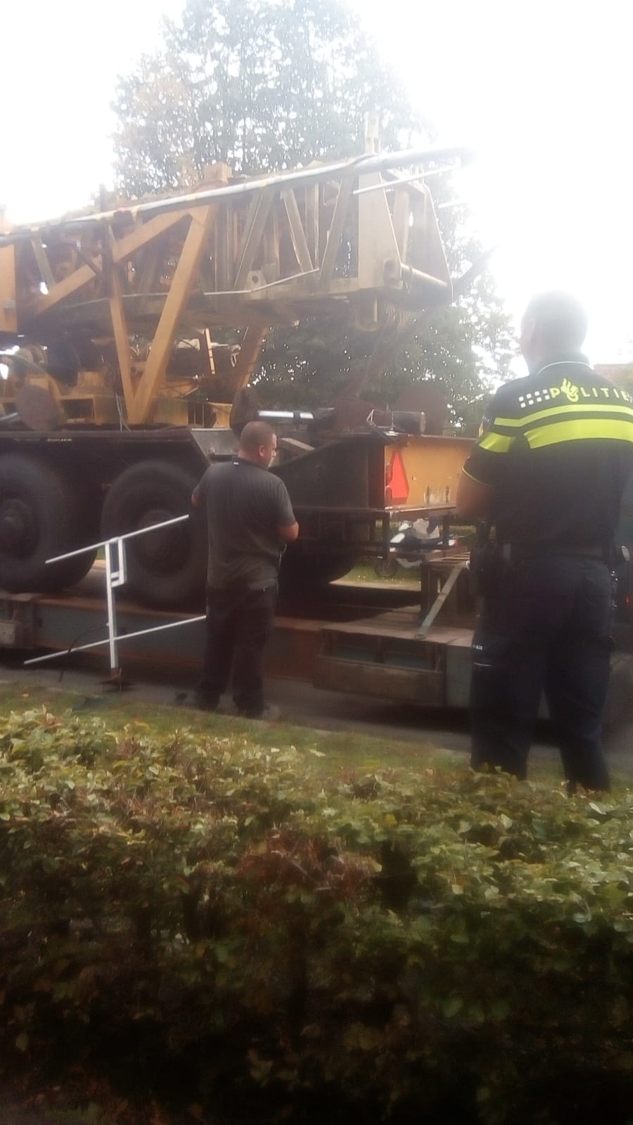 De heren van het AT hebben de mast af laten voeren met grote politie inzet.